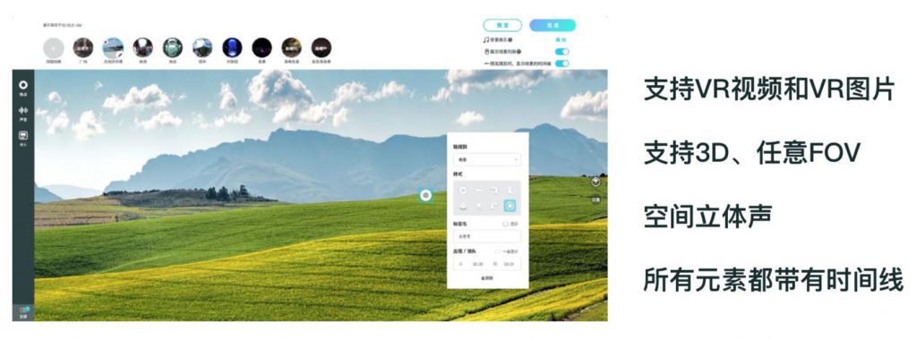 VeeR 联合创始人兼 CPO 陈婧姝介绍,在 VeeR 创造者能够轻松制造全景周游、互动视频、分支剧情等多种形式的 VR 互动内容。现在,渠道支撑以 VR 视频及 VR 图片为场景进行互动体会修改,创造者能够在时刻线上按需求增加空间音频、热门以及支撑各类 2D 前言及外链的卡片。