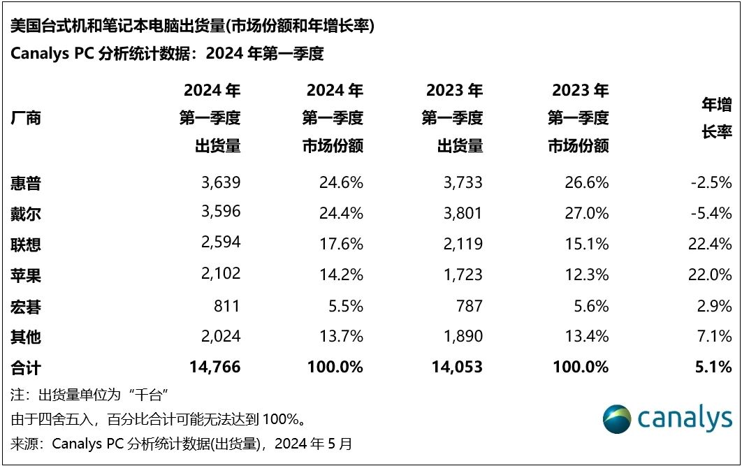 Canalys:美国 PC 市场复苏势头良好,2024 年有望实现 5% 增长