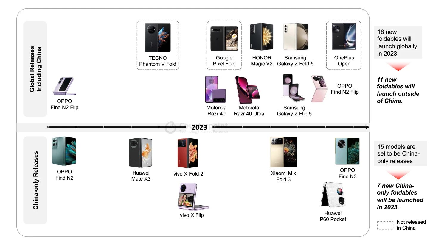 2023年折叠屏产品发布情况:全球及我国折叠屏商场比照